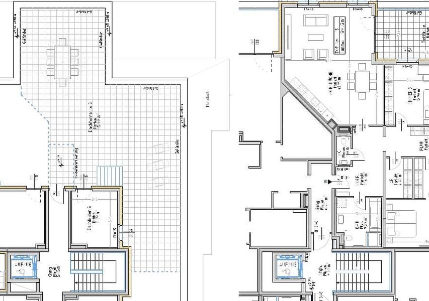 | Lüftung: | alle innen liegenden Bäder und WC's werden mechanisch über Dach entlüftet |
